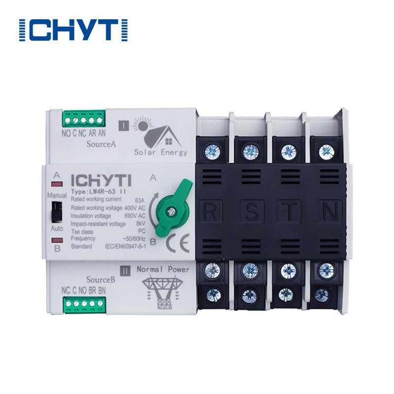 Fungsi saklar pergantian otomatis ICHYTI Wholesale pemasok Cina untuk inverter adalah untuk secara otomatis menghubungkan catu daya cadangan jika terjadi pemadaman listrik mendadak untuk memastikan pengoperasian yang berkelanjutan. Jenis saklar pergantian otomatis untuk inverter ini banyak digunakan di tempat-tempat penting dengan kebutuhan tinggi akan pasokan listrik berkelanjutan, seperti gedung bertingkat, kawasan perumahan, rumah sakit, bandara, dermaga, pemadam kebakaran, metalurgi, bahan kimia, tekstil, dll. Aplikasi umum termasuk elevator, sistem proteksi kebakaran, dan sistem pemantauan. Di tempat-tempat seperti bank, pasokan listrik yang tidak pernah terputus juga digunakan, dan sumber daya cadangannya biasanya berupa baterai. Sakelar pergantian otomatis untuk inverter dapat mencapai konversi otomatis tegangan lebih, tegangan kurang, dan kehilangan fasa, dan memiliki fungsi alarm cerdas. Jenis peralatan listrik: jenis peralatan listrik yang berbeda mungkin memerlukan jenis atau spesifikasi pemutus arus yang berbeda, dan pemutus arus yang sesuai harus dipilih sesuai dengan karakteristik peralatan.