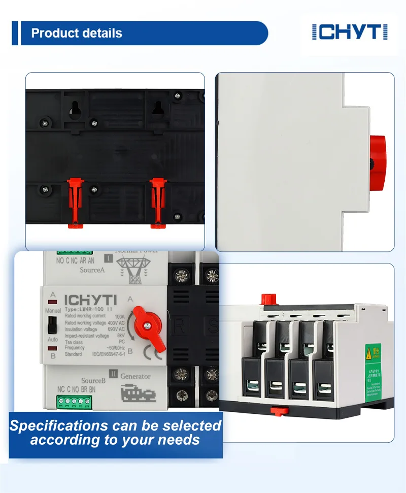Pabrik Cina ICHYTI Beli Grosir Diskon Saklar pergantian otomatis fase tunggal memiliki tiga fungsi peralihan dalam sistem catu daya dari jaringan listrik tiga fase empat kawat, termasuk peralihan otomatis catu daya siaga, catu daya cadangan, serta jaringan listrik dan generator. Ini dapat mendeteksi nilai efektif tegangan tiga fase dan nilai efektif tegangan fase dan fase dari dua sumber daya secara real-time, dan secara otomatis beralih dari sumber daya abnormal ke sumber daya normal jika terjadi tegangan berlebih, tegangan rendah, atau kehilangan fase dalam fase apa pun.